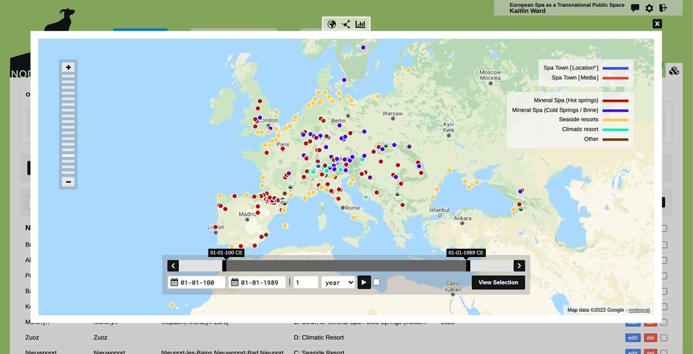 A second important hypothesis of our project is that both the grand and the lesser well-known spas across Europe emulated a basic model, which also informed the development of seaside resorts and climatic spas. Therefore, we are attempting to map the layout of spas across Europe, collecting information about the emergence (and possible demise) of key spa institutions such as the sanatoria, the (grand) hotels, the casinos, parks and promenades in more detail. While not aspiring to the same completeness as with the spa towns in general, we hope to be able to document the spatial layout of a sufficiently high number of resorts in detail. Again, you can help us, with your local expertise, by entering information on such spa facilities and certain elements of urban infrastructure into our database. The nodegoat database technology allows us, (and you, too!) to easily produce detailed maps of each resort across Europe, reflecting the dynamics of the temporal development of each of the spas. How to enter data about spa facilities is explained in video tutorial 2.