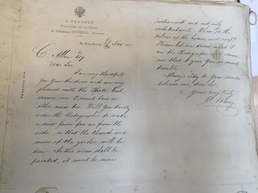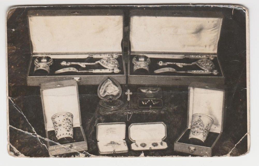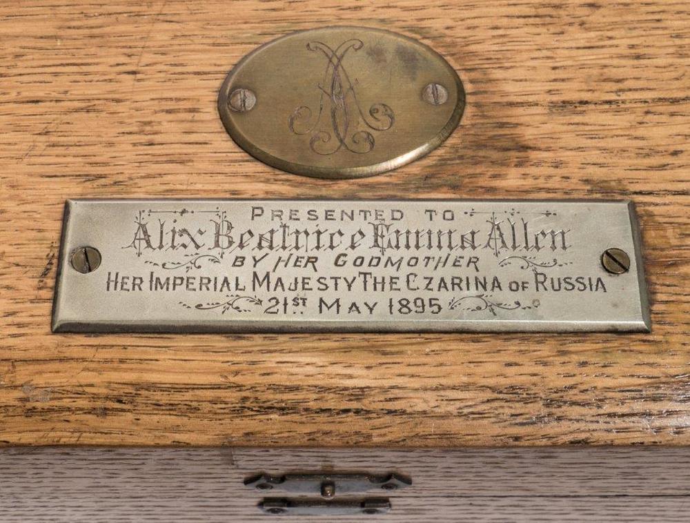 The cutlery set shown here is one of the many gifts and letters the Tsarina sent to her godchildren (this one to the girl Alix) before being executed by the Bolsheviks in the wake of the Russian Revolution in 1918. The story of her stay at Cathcart House, her desire to stand as godmother and the gifts she sent to her godchildren, is now told in Harrogate's Royal Pump Room Museum and is illustrated by this set alongside objects donated by the son of Nicholas Allen, the twin boy.