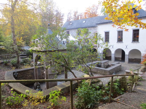 For the end of October, the weather was very nice and before and after the working in the archive I managed to see that important restauration work was going on in the city, above all a reconstruction of the 19th century iron-and-glass-structure of promenade in the Parc de Sept Heures and of the 1880 bath house. I also did a few hikes in the surroundings, visiting the most famous ‘pouhons’ (sources) above the city and the fens, an important water reservoir for some of the springs.